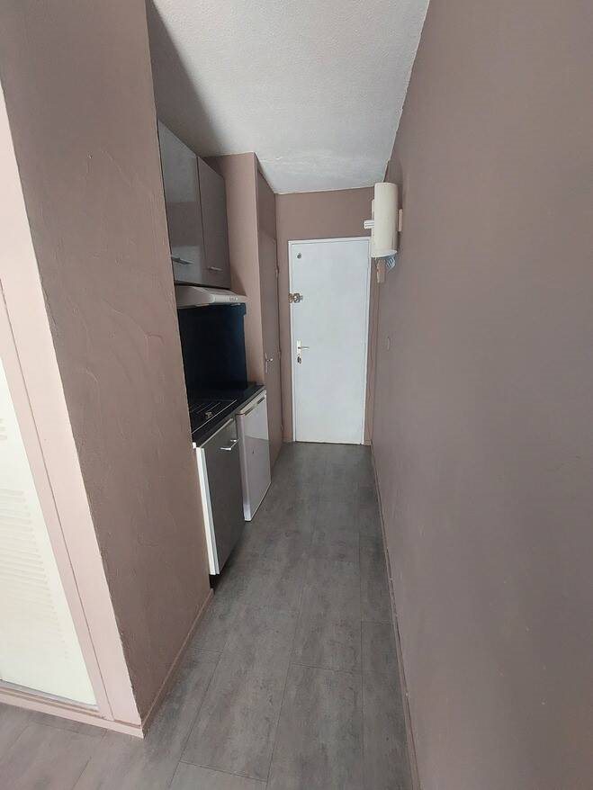 Au 8 € étage d'un bâtiment du Domaine de la Parade, ce studio de 14,55 m² s'ouvre sur une vue dégagée sur les arbres, apportant calme et luminosité.La pièce de vie, simple et bien agencée, comprend un canapé Bz, une petite table, des placards et une kitchenette équ...