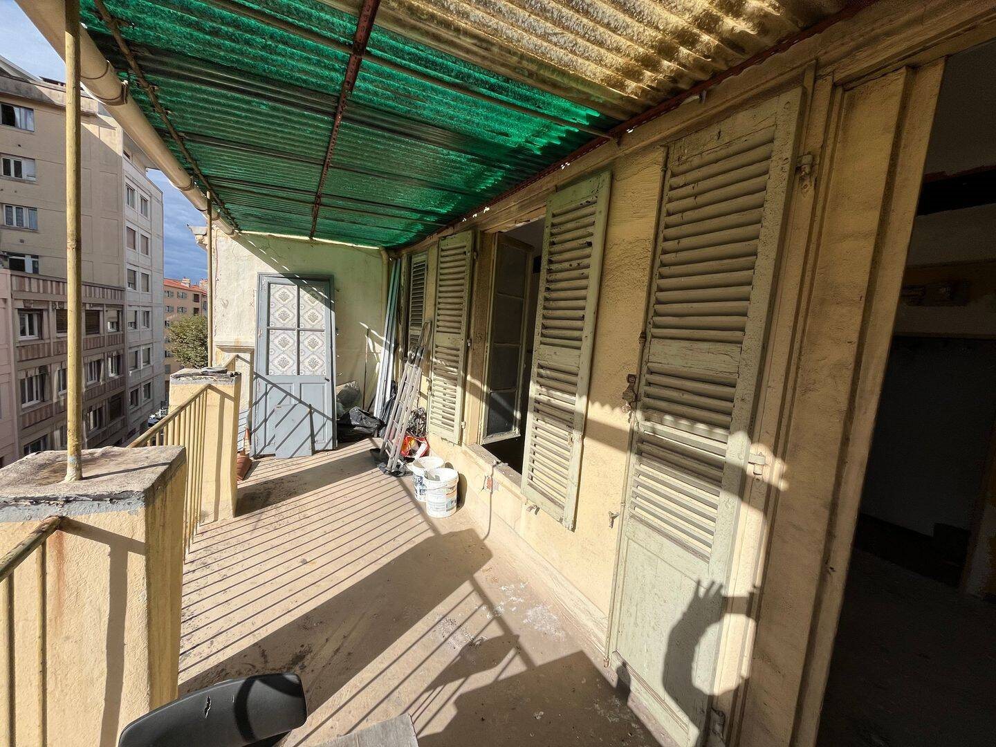 Plateau de 22m2 très lumineux avec terrasse de 12m2 orientée Sud Situé en centre-ville de Toulon au dessus de la place d’Armes 4e étage sans ascenseur Réfection des plafonds et murs de l’appartement en cours Façade de l’immeuble votée et payée, donc murs extérieurs per...