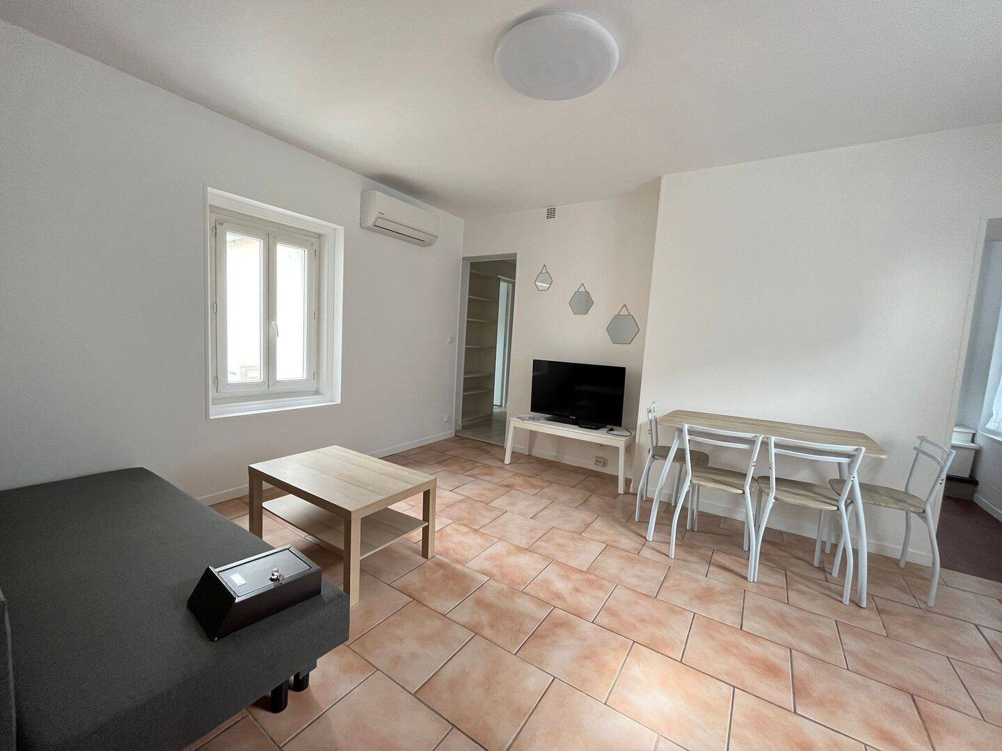 F2 fraîchement rénové, tout équipé et climatisé à seulement 50 mètres de l’arrêt de tramways Charles Barrier ! Salon traversant équipé d’un canapé/lit, table basse, d’une télé écran plat et d’une table avec ses 4 chaises. Cuisine toute équipée avec de nombreux rang...
