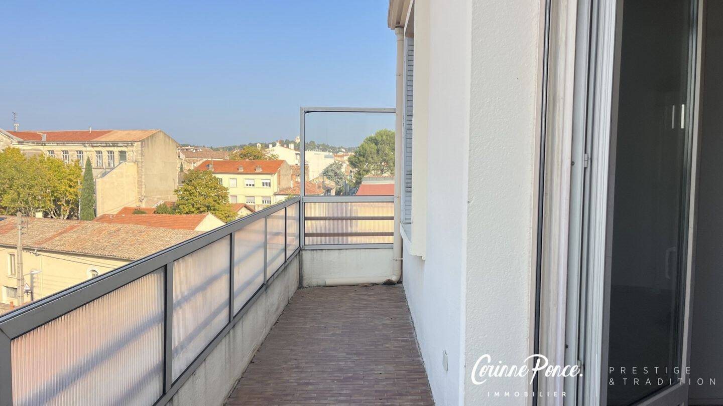 En Exclusivite. Nimes Centre Ville, idéalement situé, à 5mns à pieds des Arènes , Corinne Ponce Immobilier vous propose cet appartement P3/P4 de 75 m² avec terrasse au dernier étage d un immeuble Art Deco trés bien entretenu Cet appartementse compose d'une entrée, d'un séjour de 20m², d'une cuisine indépendante de 9 m² avec loggia attenante, d'une grande salle de bains et de 3 chambres de 10,11, 11 chacune.Une cave en rdc de l immeuble complète se bien. Le double vitrage a été installé.La terrasse de 14m² est un vrai atout ! Des travaux sont à prévoir pour en optimiser le confort.Beau potentiel et idéal première acquisition !