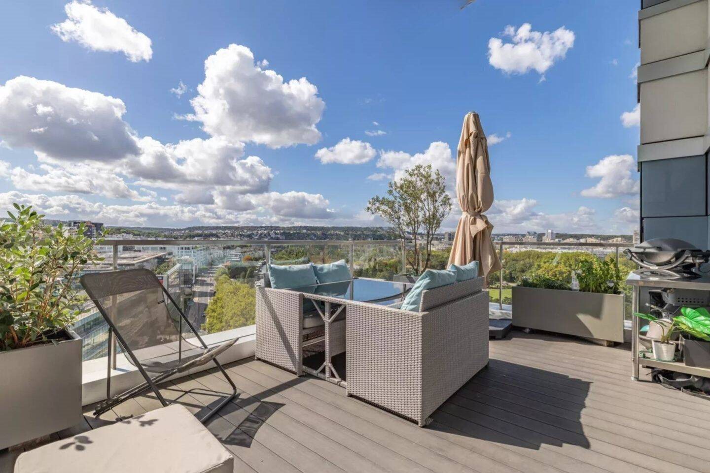 Appartement 4 pièces très lumineux en état impeccable 12ème étage d'un immeuble récent (2017) de très haut standing avec gardien Aucun vis à vis, vues exceptionnelles sur la Seine, l'île Saint Germain, Boulogne et Paris Grande terrasse de 22m2 Environnement ca...