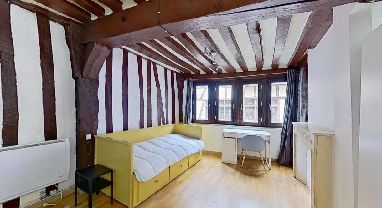 Studio entièrement meublé dans le centre historique de Rouen - Idéal étudiant ! Studio meublé à neuf comprenant : - Un lit avec matelas neuf, une table de chevet, un bureau et un placard. - Une cuisine ouverte comprenant : micro-ondes, plaques de cuisson, ho...