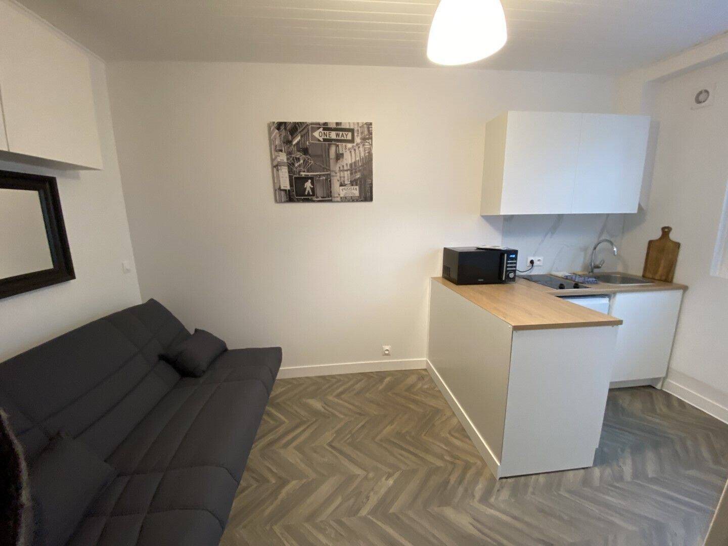 A Paris 14ème, rue du Moulin Vert, proximité commerces et transports (bus, métro lignes 4 et 13) : un studio meublé en Rdc refait à neuf comprenant pièce principale, coin cuisine équipé, salle d'eau avec W.C. Chauffage et eau chaude individuels électrique