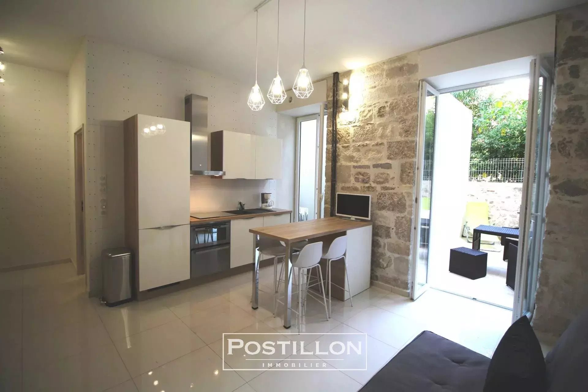Carre d'or, F2 entièrement rénové, Composé d'une Entrée, un Séjour avec Cuisine Us donnant sur une terrasse de plus de 15m², une Chambre et une Salle d'eau. Possibilité de stationnement dans la cours Les informations sur les risques auxquels ce bien est exposé sont disponibles sur le site Géorisques :
