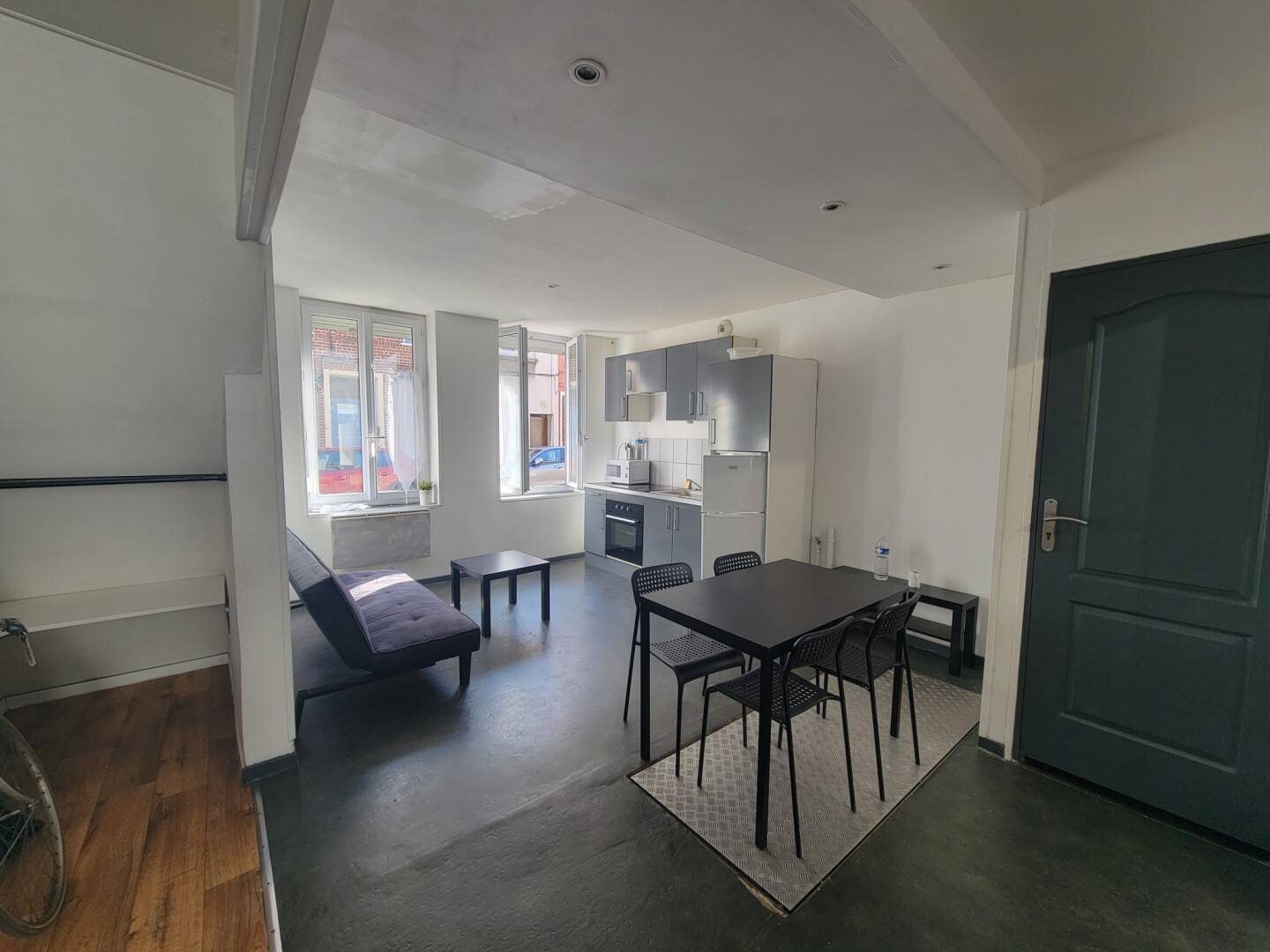 Appartement T2 meublé à louer rue d'Hondschoote à Lille. Situé dans une petite rue calme à 3 minutes à pied du métro montebello cet appartement T2 en Rdc se compose d'un couloir avec rangements donnant sur un salon/séjour avec cuisine américaine équipée (réfrigérateur, micro...