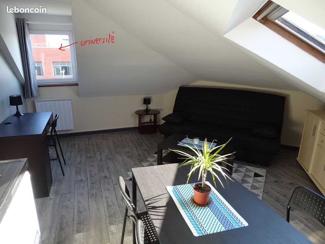 Loue Studio Meuble Libre De 23M² lumineux l'ensemble en bon état. -Situé face à l'Université du Havre ( juste la rue à traverser ) -Institut national des techniques économiques et comptables ( à 181 m ) -Institut national des transports internationaux et des ports ( à 181 m ) -Conservatoire Arthur Honegger - Le Havre ( à 300 m ) -Esadhar Le Havre ( à 306 m ) -Ecole supérieure d'art du Havre ( à 306 m ) -Lycée Jules Siegfried - Le Havre ( à 324 m ) -Institut supérieur d'études logistiques ( à 802 m ) -Lycée François 1er - Le Havre ( à 990 m ) -Sciences Po Le Havre ( à 995 m )... A proximité des transports (Tram et bus), commerces et restaurations, à 10mn à pieds de la gare Sncf et des Docks. Proche piscine et cinéma. Composition Du Logement: Entrée/dégagement. Pièce à vivre: -coin cuisine (tout équipé + vaisselle + table et chaises) -coin bureau (fibre optique + prise téléphone + cable Tv) -coin nuit (clic clac neuf + mobiliers) -différents rangements Salle de bain comprenant lavabo+douche+wc+rangement. Divers: Interphone / double vitrage / rideau occultant / chauffage individuel électrique. Possibilité de mettre un vélo dans une petite cour intérieur. Loyer: 420€ (400€+20€ de charges comprenant eau froide et électricité des parties communes). Caution De 400€ demandée + garant obligatoire. Aucun frais de dossier.