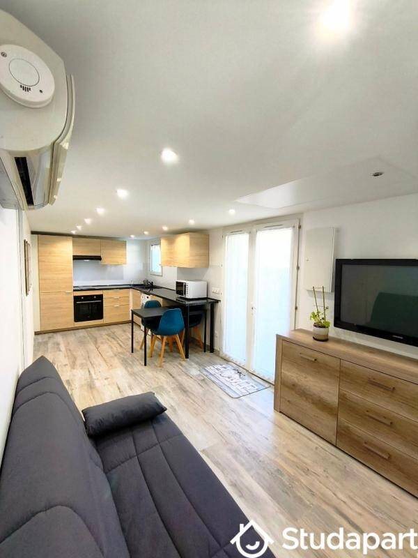 2 Pièces meublé et entièrement rénové, idéal pour étudiants ou couple Situé en rdc de villa mitoyenne, avec terrasse. Surface 32m² +9m² de mezzanine en sous pente Climatisation reversible. Cuisine toute équipée avec électroménager (micro-onde, four, plaque ...