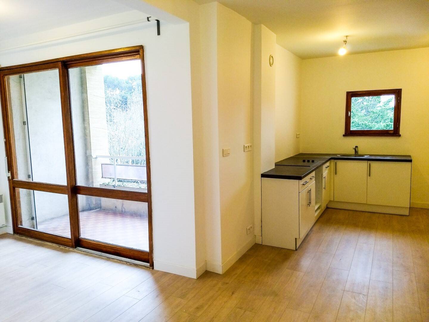 Appartement de 43m² au Pigonnet avec terrasse au 2ème étage, séjour sud donnant sur terrasse loggia abritée, cuisine ouverte, chambre, salle de bains, placards, wc séparé, chauffage et eau chaude individuels électrique, résidence fermée stationnement commun, cave. Loyer 807€cc hon.559€ttc. Agence Aixoise d'Administration de Biens Immobilier Malherbe