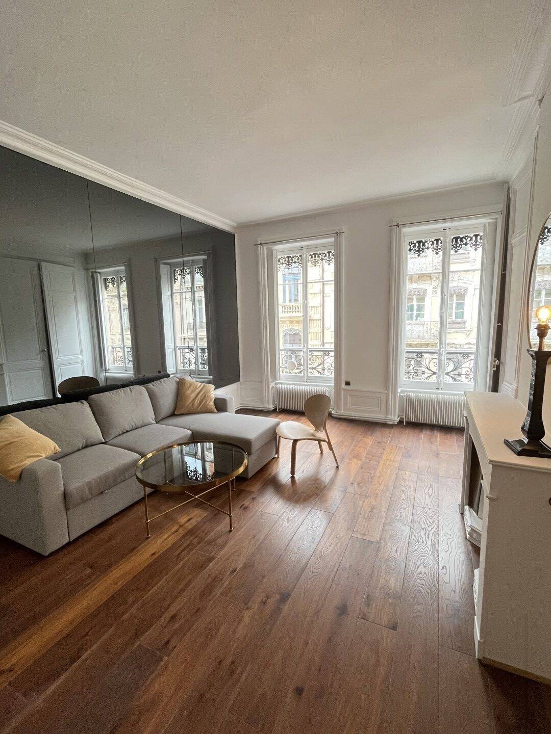 A saisir - 89 rue du Président Edouard Herriot Au plein cœur de la Presqu'Île, nous vous proposons à la location ce T4 bis meublé rénové. Au 3ème étage avec ascenseur d'un immeuble de standing, l'appartement se compose d'une entrée, d'une cuisine aménagée et équipée, d'un salon, d'une salle à manger, de deux chambres, d'un dressing, d'une salle d'eau, d'un Wc séparé et d'un balcon. Chauffage et eau chaude individuel gaz - Chaudière neuve Les charges comprennent le ramonage, l'entretien de l'ascenseur et l'entretien et l'éclairage des parties communes. Si vous souhaitez visiter, appelez-nous !