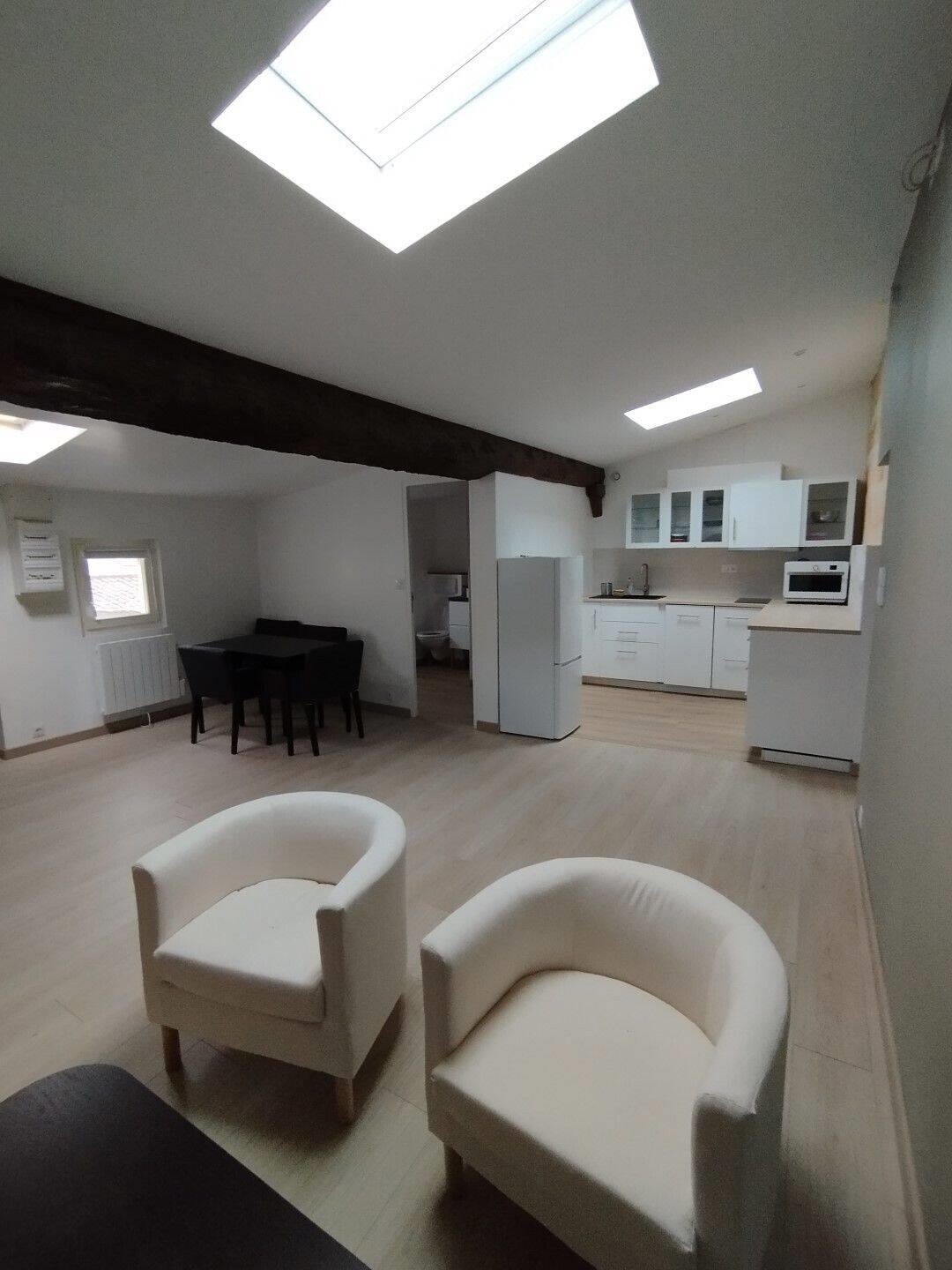 Joli T2 meublé, mansardé au cœur du centre historique, composé d'une pièce principale de 35 m3 avec cuisine américaine, une grande chambre, une entrée, et une salle d'eau avec wc. Central, calme et lumineux..