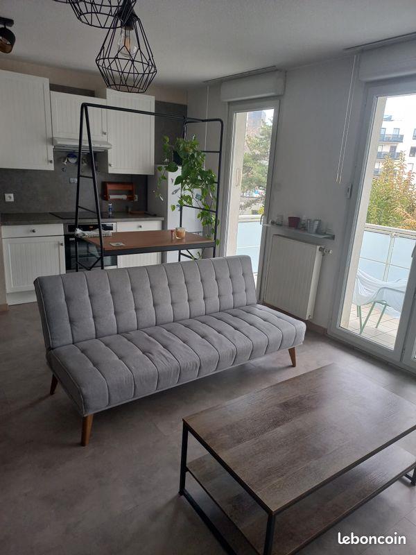 Bien situé dans un quartier calme et proches des commodités. Il est composé de : -Un grande séjour de 36m2, -Cuisine ouverte équipée (lave-vaisselle, 3 plaques vitrocéramiques, grand four encastré), -Une chambre meublée (lit et sommier, placard, table de chevet ...), -Une salle de bain avec une douche italienne spacieuse et un lave linge, -Un balcon terrasse spacieux de 8m2. La location inclus une place de parking attitrée.