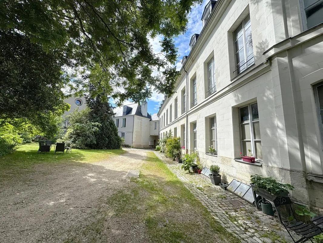 Appartement À Vendre. Tours "CATHEDRALE" Au cœur d'un havre de paix et d'un ensemble clos de mur, bel appartement de type 3/4 en duplex/souplex original dans son agencement : Rdc : entrée avec placards, séjour + cuisine américaine en exposition sud, chambre avec placard, salle de bains, wc. En souplex : grand dégagement/bureau, grand chambre ou pièce a usage multiple de 29m2. Parking privatif exterieur sécurisé, calme, proche de tous les avantages du centre ville ainsi que de la gare Tgv.