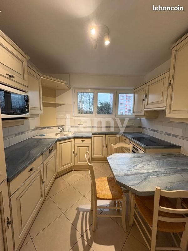 Appartement T5 de 82m² au 3ème étage d'une résidence sécurisée sans ascenseur, proche du secteur gare. Composé d'une entrée, d'une cuisine entièrement équipée (plaque, hôte, four), d'un double séjour avec accès direct au balcon, dont 2 avec dressing. Salle d'eau avec douche, et Wc séparés. Canapés, chaises, tables et divers meubles sont laissés à la disposition du locataire. Chauffage collectif au gaz urbain et garage en coursive inclus.