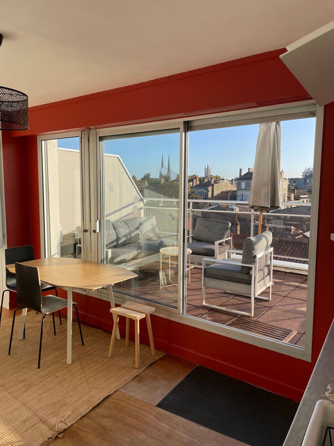 Nous vous proposons à la location cet appartement atypique de 27 m², idéalement situé à seulement 5 minutes à pied de la place Pey-Berland. L’Appartement se compose d’une pièce de vie avec cuisine, distincte de l’espace nuit comprenant la chambre et la salle ...