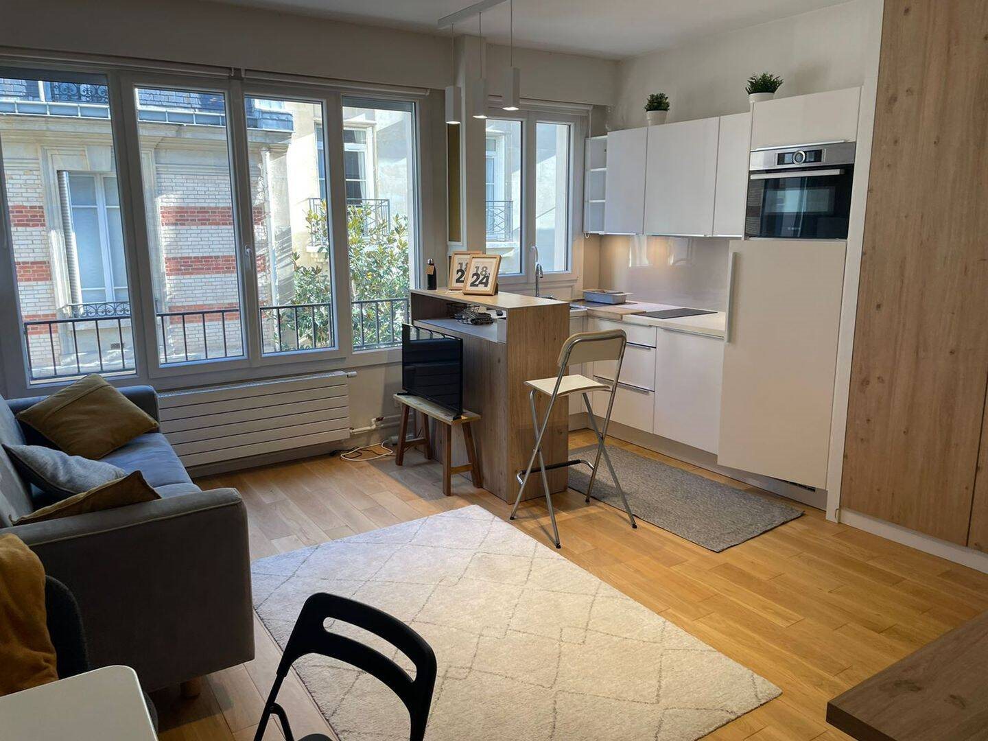 Magnifique grand studio de 28.6 m², éclairé, aéré et entièrement équipé et entièrement meublé, au 3e étage, avec ascenseur.Etat impeccable. Séjour avec coin repas, canapé lit, plus lit escamotable rendant le studio très spacieux, salle de bain équipée, lave-linge, cui...