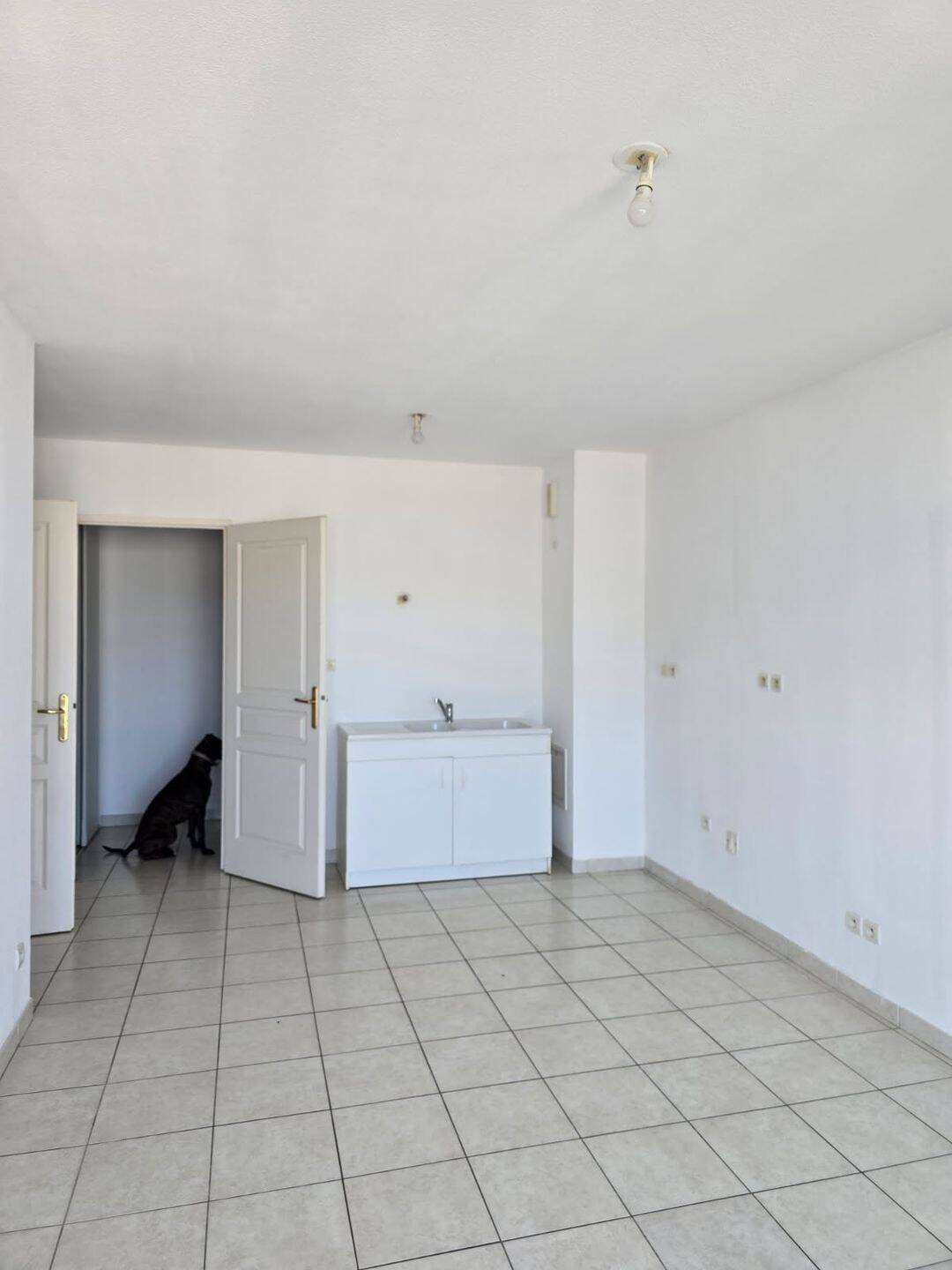 Bon rencontre, appartement T2 38 M2 au 7ème et dernier étage Nord -ouest. Immeuble 49 lots. Ascenseur et parking sécurisé numéroté avec bip d'accès. Comprenant une pièce à vivre (séjour + cuisine) de 18 m2 donnant sur une terrasse 6,60 m2 avec bardage fer ...