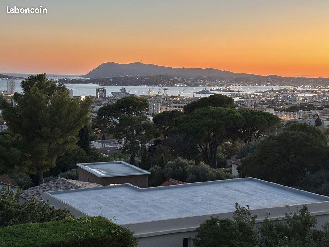 Magnifique Appartement Standing T4 Vue Mer Terrasse GARAGE Rare à Toulon. Location meublée à l'année, sur les pentes du Faron, vue plein Sud à 180° et sans vis à vis, vous surplombez la Rade de Toulon et ses alentours. Situé à la fin d’une impasse très calme, vous disposez d’un appartement de 114m2 avec une terrasse d’environ 20m2. L’appartement se situe au 2ème étage avec ascenseur dans une résidence de standing comprenant 4 étages. Il est traversant et chaque pièce dispose de fenêtres ou baies vitrées. Compris dans la location et dans la résidence : - un garage fermé, privatif et équipé d’une ouverture télécommandée - une cave privative - un grand local à vélo commun - de nombreux parkings fermés dans la résidence Loué en meublé standing avec équipements de niveaux supérieurs: - entièrement climatisé - Grande cheminée dans le salon - table + chaises - très beau canapé + fauteuil + bar + bibliothèque +vaisselier - chauffage collectif à gaz dernière génération + thermostats individuels sur chaque chauffage - 3 chambres avec placards aménagés dont 1 dressing : (1 lit 160x200 + 1 lit 140x200 et possibilité 1 lit de 90x190) - 2 télés dont une neuve Sony Bravia d’environ 190 cm dans le salon et une autre Tv dans la chambre 160x200 - Équipement Fibre - Grande cuisine entièrement équipée et électroménager récent ou neuf avec un cellier attenant - Très belle Sdb, 2 vasques + grande douche à l’italienne. - Sol parquet pour chambres, marbre pour pièces à vivre et carrelage pour la cuisine - Loyer : 2300 € Mensuel + 287 € charges (eau chaude/eau froide+chauffage collectif gaz+entretien parties communues) +taxe ordures ménagères Logement disponible au (l'état des lieux d'entrée peut se faire avant les fêtes de Noël aux alentours du ) - Frais de gestion locative AGENCES S'ABSTENIR Visites sur dossiers sérieux
