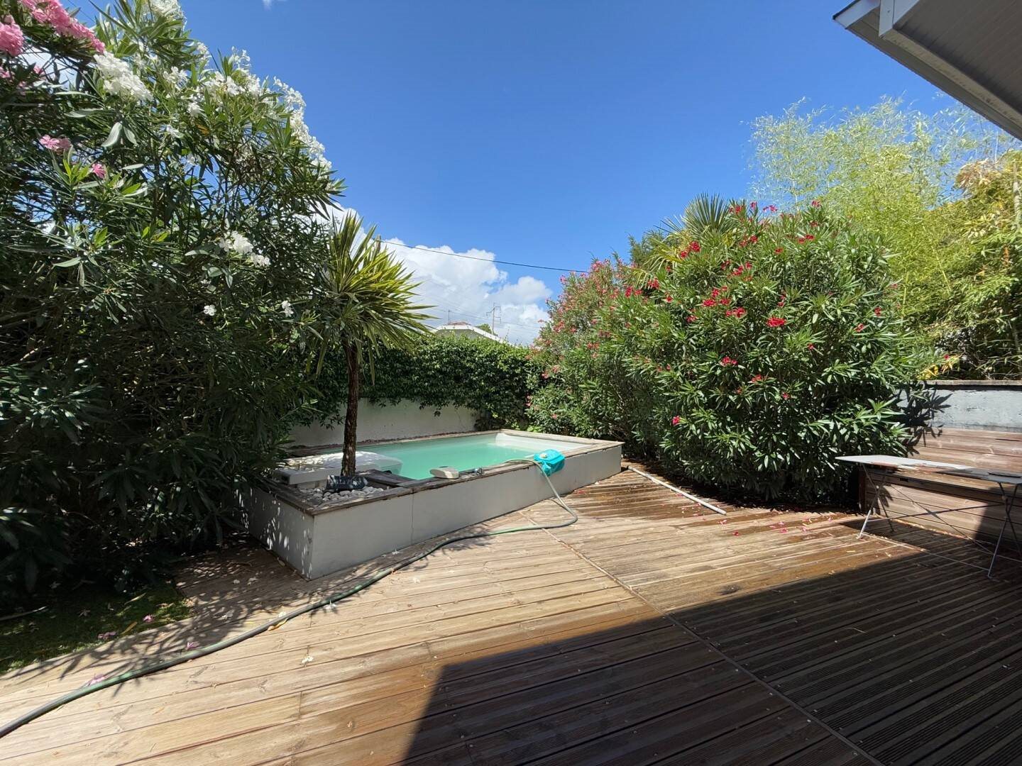 Votre agence Abec Immmobilier vous présente à Bordeaux Caudéran quartier Lestonat, une maison meublée de 101m² avec piscine et terrasse. Cette maison se compose d'une entrée, d'un salon / salle à manger traversant donnant sur une terrasse avec petite piscine et sur un patio, d'une cuisine aménagée ouverte, de 3 chambres, 2 salles d'eau, salle de bain, buanderie. Un place de stationnement complète ce bien. Double vitrage, climatisation réversible. Proximité accès Bus Express (Ligne G). Disponible immédiatement.