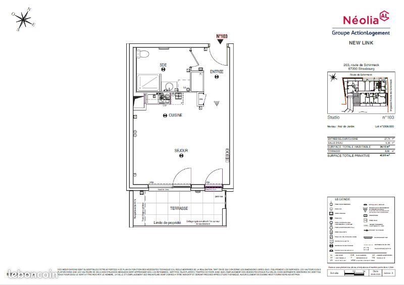 Programme Neuf - Livraison Prevue Au Nous vous proposons la location de ce T1 de 34.10m2 situé en Rdc au 263 Route de Schirmeck 67200 Strasbourg. Il se compose d'une pièce de vie de 27.74m2 avec cuisine ouverte meublée, 1 sdb avec douche et Wc. 1 balcon de 8.50m2 complète ce bien. Le chauffage est collectif (plancher chauffant) Possibilité de louer une place de parking en sous sol au tarif de 40.93 euros/mois. Pour plus de renseignements, nous vous invitons à nous par mail. Sans Frais D'agence ! Ref