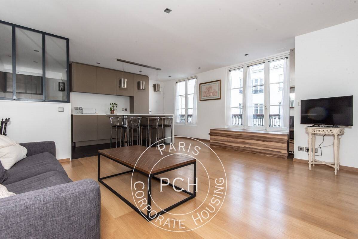 Paris Corporate Housing, services immobiliers pour entreprises et expatriés. Appartement meublé situé rue Beautreillis à Paris dans le 4e arrondissement à proximité de la station Saint-Paul (ligne 1). Dans un immeuble du début 20e siècle, avec des parties com...