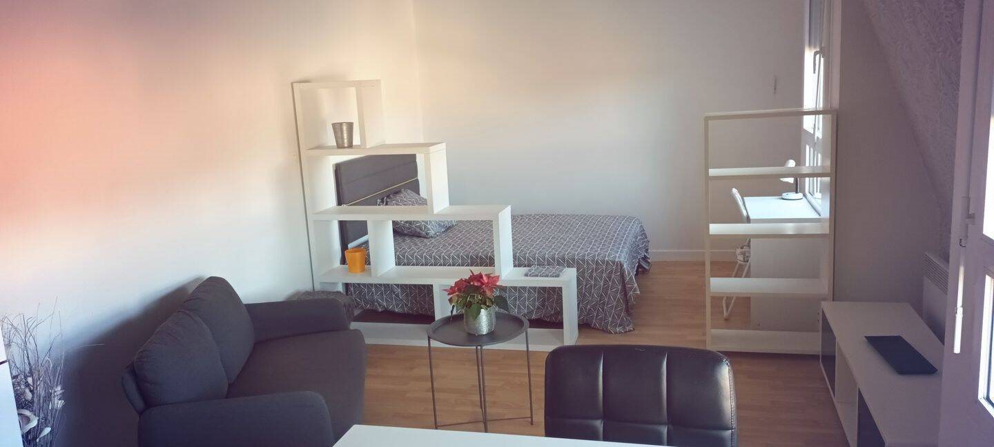 Ref 777G: Grand studio meublé situé rue de Doullens à Amiens, au 3ème et dernier étage comprenant: entrée, belle pièce de vie composé d'un double espace salon et nuit, cuisine équipée (plaque de cuisson, réfrigérateur top, micro-ondes), salle d'eau avec lave-linge et wc individuel - Superficie 32m² - chauffage individuel électrique - Loyer 530€ + provisions 50€ (eau froide - communs - tom) - Libre - Ref 777G
