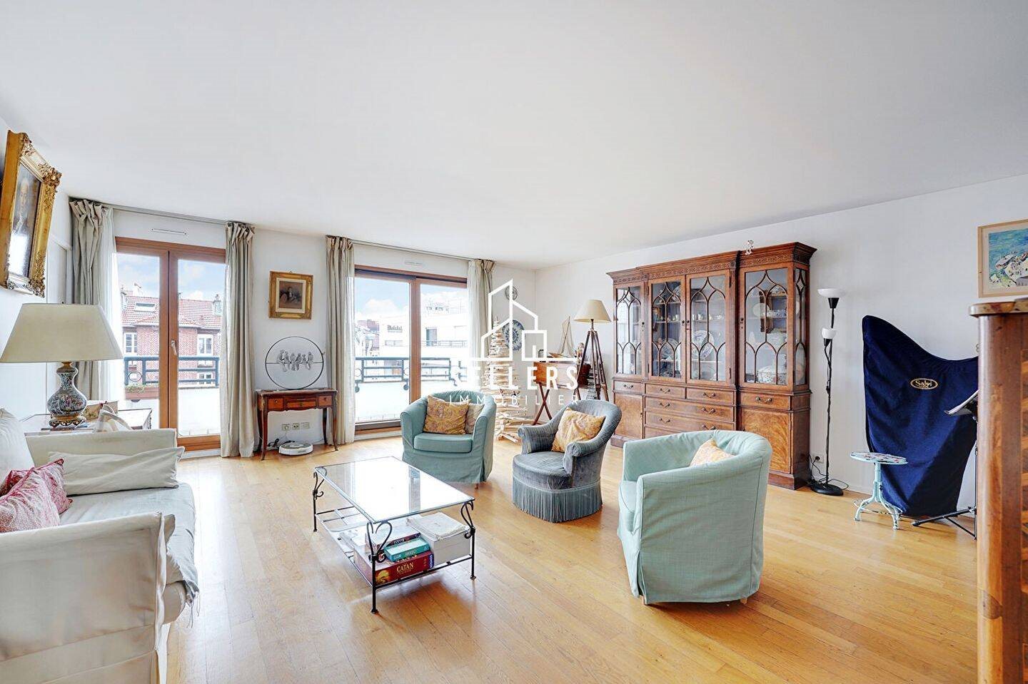 Boulogne Billancourt - Les Passages -- Appartement type duplex de 171,57 m² carrez avec balcons situé au 5ème et 6ème étage dans un immeuble récent de bon standing à proximité immédiate des commerces et du métro. -- Au 1er niveau, l'appartement se compose d'une entrée, d'un séjour ouvrant sur un balcon/ terrasse sans vis-à-vis exposée ouest, d'une salle à manger, d'une cuisine équipée et aménagée, de 2 chambres, dont une avec balcon et d'une salle de bain. -- Au 2ème niveau, vous trouverez 4 chambres avec balcons, 1 salle de bain et 1 salle d'eau. -- Appartement calme et lumineux. Deux emplacements de parking complètent ce bien. -- Emplacement à proximité des commerces et des transports. Copropriété de 38 lots (Pas de procédure en cours). Charges annuelles : 6025.00 euros. Agence Sellers (Ei) Agent Commercial - Numéro Rsac : - .