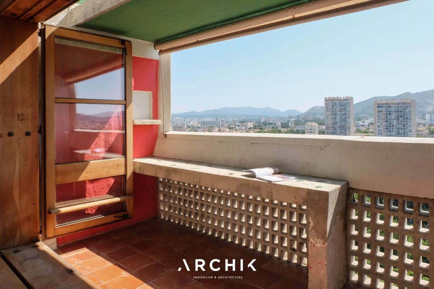 Architecture moderne labellisée Patrimoine du XXème, Monument Historique, et inscrite au patrimoine mondial de l’UNESCO, la Cité Radieuse de Le Corbusier est un monument emblématique de la Reconstruction après-guerre. Situé au 7ème et dernier étage, ce duplex montant de 61 m2 de Type C a été restauré tout en conservant l’esprit de Le Corbusier. Le premier niveau accueille la cuisine Charlotte Perriand d’origine aux teintes Le Corbusier. Plus loin, le séjour en double hauteur, avec baguettes et niches d’origine, ouvre sur la loggia colorée aux couleurs pep’s jaune, vert et rouge à l’Est. La clarté procurée par les grandes baies vitrée en bois vient baigner de lumière le séjour et offre une vue panoramique sur la ville et les collines. L’Escalier avec son garde-corps en métal signé Jean Prouvé mène à l’étage. Ici, les volumes initiaux ont été respectés : un palier mène à la chambre en mezzanine, comme suspendue et plongeant sur la pièce de vie, meublée du garde-corps en claustra bois et des modules de rangement d’origine. La salle de bain a été rénovée avec des tonalités neutres. Pensée comme un « village vertical » aux allures de paquebot, la Cité Radieuse offre à ses habitants de nombreux services comme un salon de thé, une librairie, un hôtel, un restaurant. Son toit-terrasse abrite une école maternelle, une pataugeoire pour enfants et le centre d’art contemporain d’Ora Ïto : le Mamo. Embarquez pour le mode de vie Le Corbusier ! « L'architecture est le jeu savant, correct et magnifique, de formes assemblées dans la lumière. » Le Corbusier