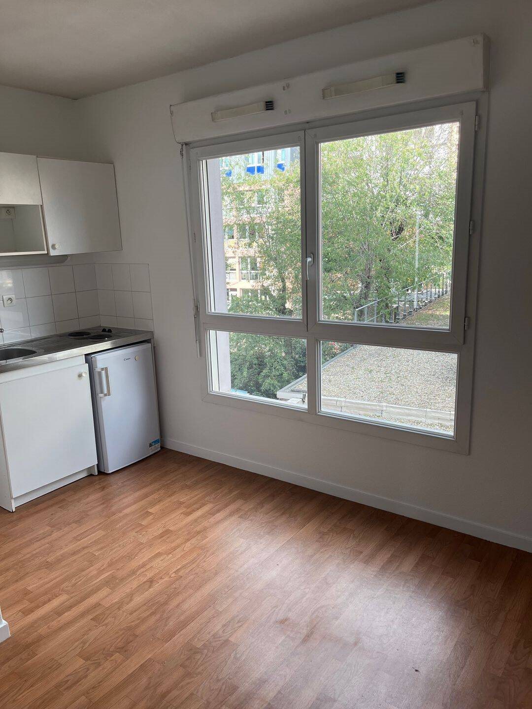 Beau studio situé à 350 mètres de la manufacture des tabacs au 2ème étage d'un immeuble récent. Cuisine équipée (mini frigo et plaques) et meublée. Salle de douche avec wc et emplacement pour machine à laver le linge placard radiateur et interphone