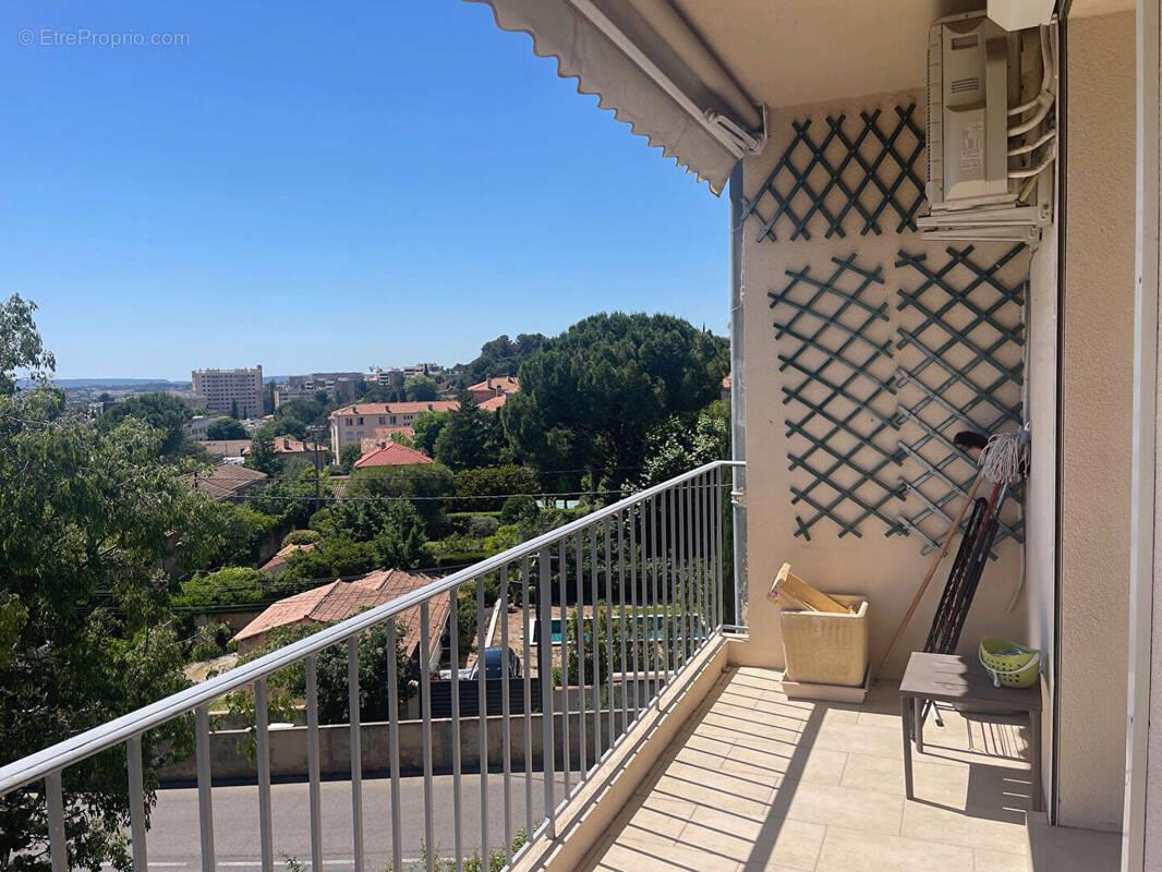 Rare à la vente sur Aix-en-Provence! A 2 pas du centre ville, l'agence Era Rdv Immo Venelles, vous propose à la vente cet appartement traversant, extrêmement lumineux, situé au 2ème et dernier étage d'une résidence sécurisée intimiste de 9 lots! D'une superficie de 76 m² entièrement rénové avec des prestations de qualités Le bien se compose d'une pièce à vivre exposée Sud donnant accès au balcon avec une vue dégagée sur tout Aix sans vis à vis, d'une cuisine indépendante entièrement aménagée et équipée, 2 chambres, salle d'eau et wc indépendant Une grande cave de 17 m², un garage fermé de 22 m² Dpe D Copropriété de 9 lots Charges annuelles de 2500 € Prix 360 000 € FAI Prix hors honoraires 346 700 € Honoraires 3.84% Ttc à la charge de l'acquéreur Etat des risques consultable sur