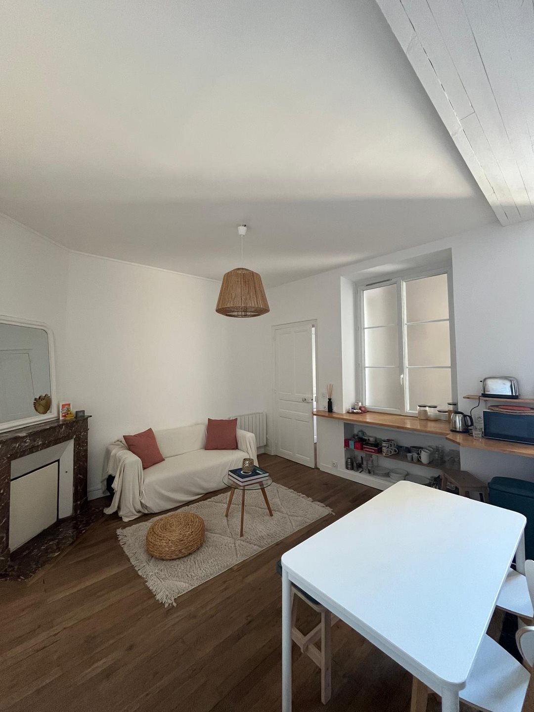 Situé au coeur d’Angers- côté cour au calme - Rue Saint Laud - pièce de vie meublée (canapé/table repas/gazinière/frigo/ rangements) couloir donnant sur 2 chambres ( lit double / bureau/rangement) – petite salle de bain lumineuse – toilette séparé. Rangement gre...