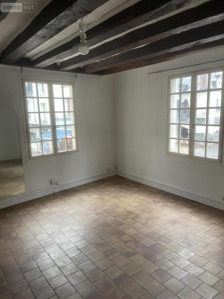 Tours Centre - Place Chateauneuf - au 1er étage Dans immeuble ancien, appartement avec tomettes et poutres, pièce de vie, coin cuisine avec plaque de cuisson, douche, lavabo, wc, une petite chambre. Loyer : 485 euros/mois cc, dont charges : 20 euros. Dépôt ...