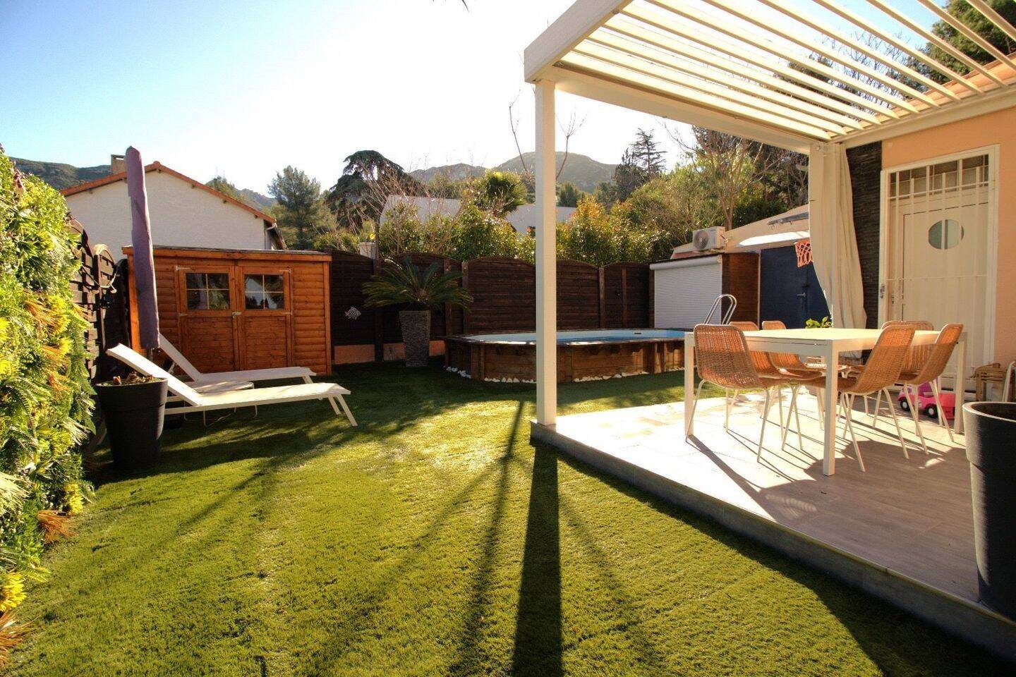 Située aux pieds des collines du Parc National des Calanques, à deux pas du parc des Bruyères, venez découvrir cette belle maison de type 3 / 4 de 90m², entièrement rénovée, de plein pied, avec un joli jardin agrémenté, sa piscine semi enterrée (3.5x5.5m), ...
