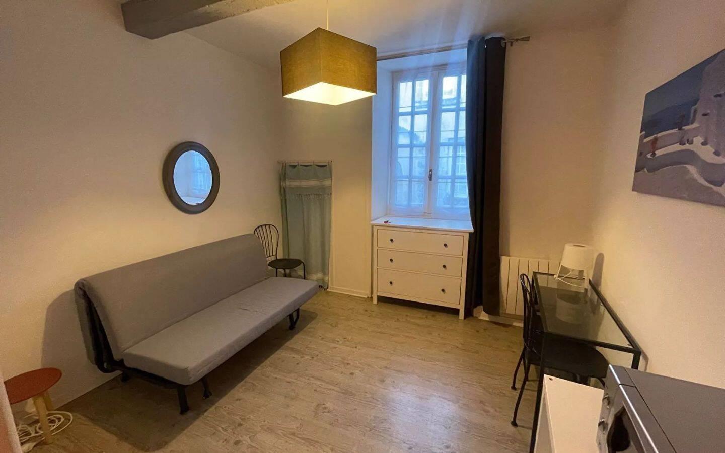 Appartement 1 pièce 25 m2. Studio meublé à louer situé en centre-ville. Il comprend une pièce de vie avec kitchenette équipée et une salle de bain avec Wc.