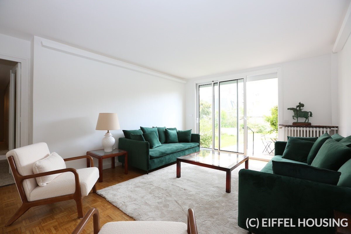 Bel appartement meublé avec un jardin privatif exceptionnel de 115m2 au 4ème étage! L'appartement se situe rue Alfred Roll dans le 17ème arrondissement, à deux pas de la place de Wagram. À proximité de la station de métro Pereire (ligne 3 et Rer C). L'appartement a été entièrement repeint et est en parfait état. Une partie du mobilier va être changé. Le jardin de 115m2 est entièrement privatif et ensoleillé! Situé au 4ème étage (avec ascenseur) dans un immeuble récent, cet appartement de 112m2 se compose d'une belle entrée, d'un grand salon, une salle à manger séparée, une cuisine séparée intégralement équipée, de deux belles chambres (avec rangements), une salle de bains avec Wc et une salle d'eau avec WC. Le jardin est accessible depuis le salon. Parquet. Double exposition. Très Lumineux. Calme. Chauffage et eau chaude collectifs. Interphone, Gardien.