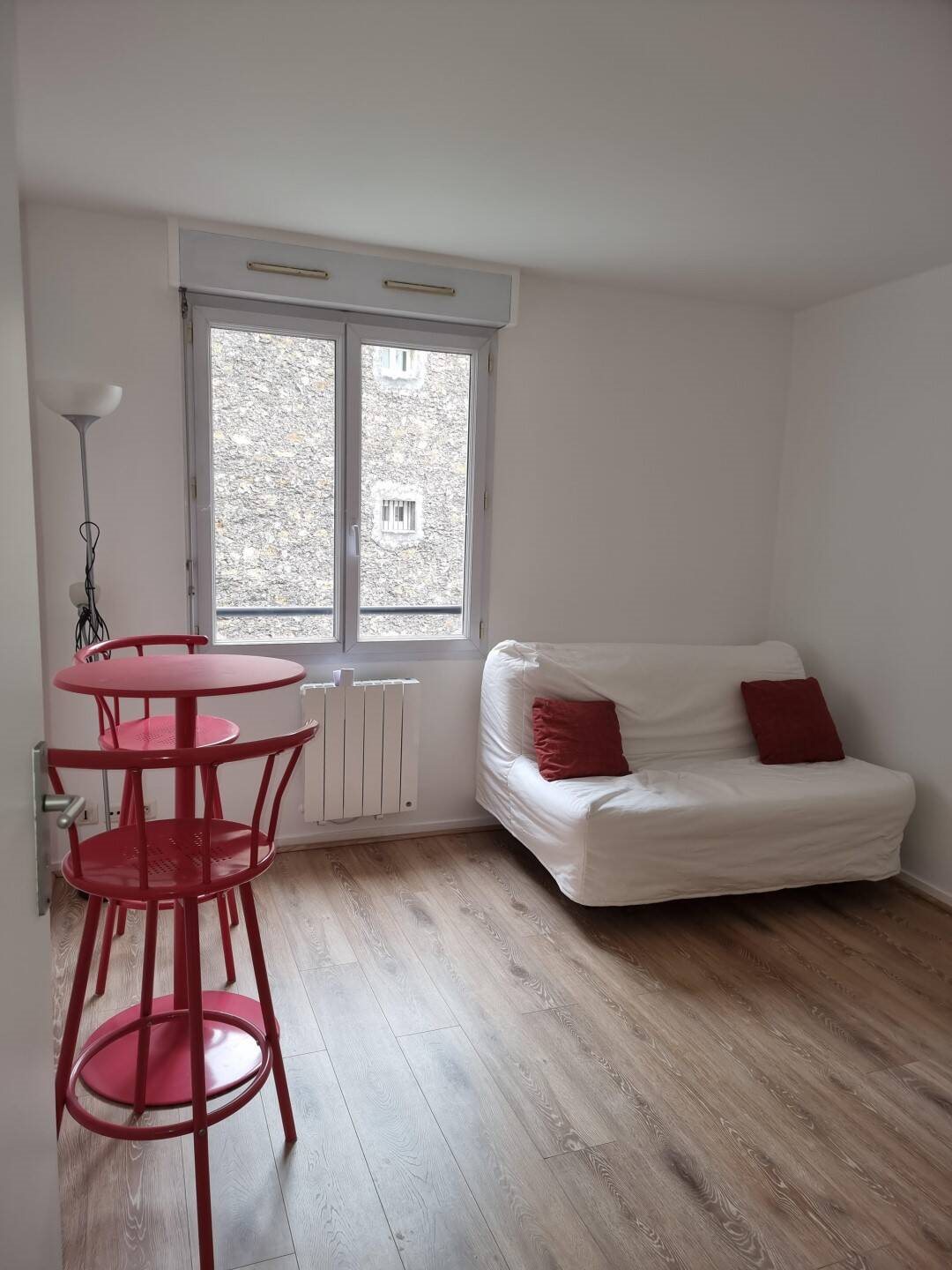 Métro Pyrénées / Rue de l'Equerre Au 1 er étage ascenseur un studio meublé, entrée cuisine, séjour, salle d'eau-wc. Loyer : 692 € Cc