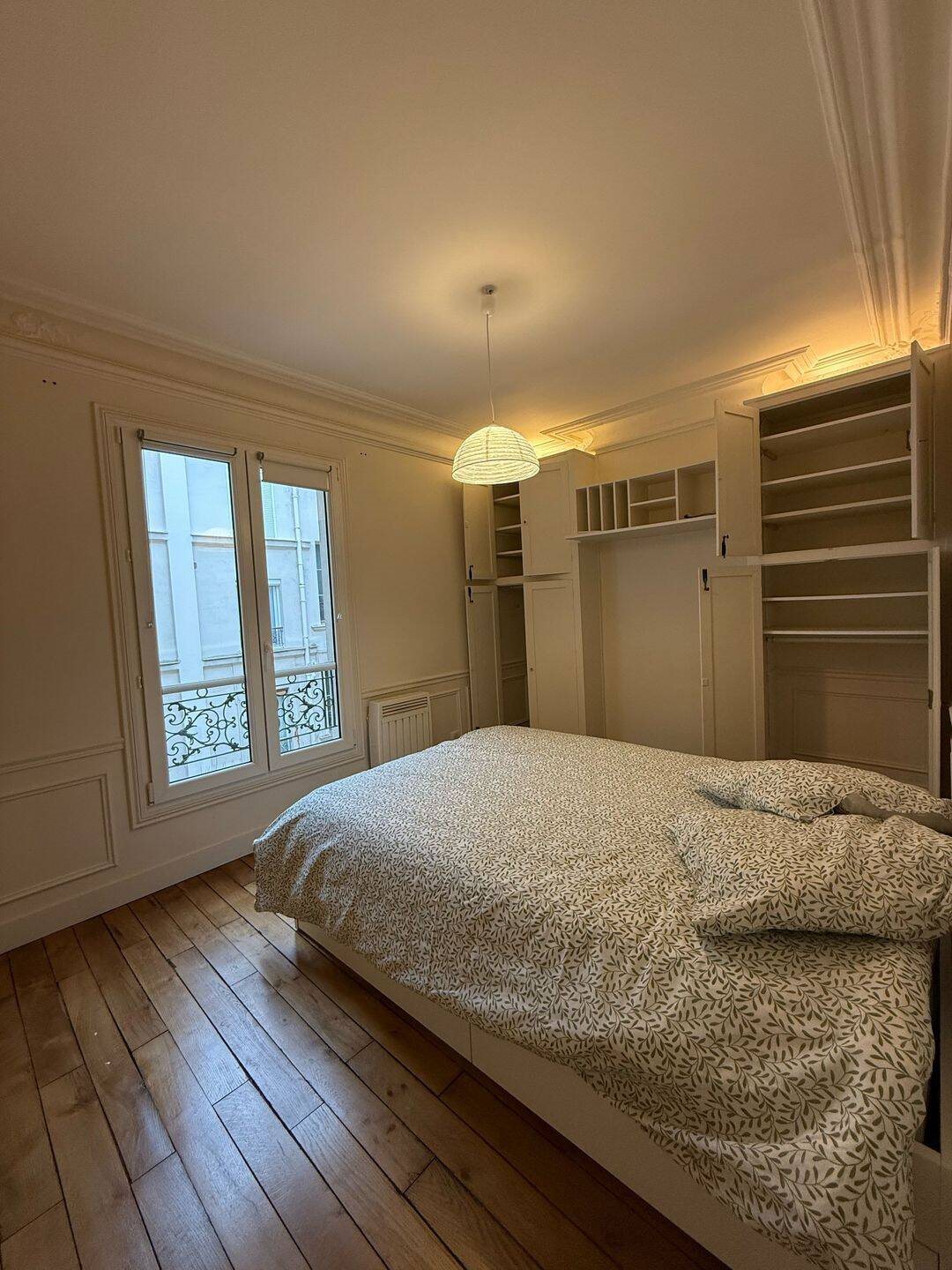 Appartement Haussmannien, parquet, moulures, 4ème étage sans ascenseur, digicode & interphone. A proximité commerces av des Ternes et transports (M1, Rer C, Rer E, T3). 3 pieces: chambre, bureau, sejour avec cuisine. Meublé avec lit double, armoires penderies ...
