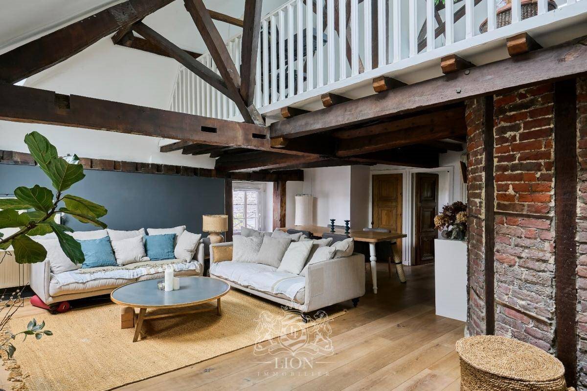 En exclusivité, au coeur du Vieux Lille, appartement coup de coeur type duplex d'environ 86 m2 (96 m2 au sol), au dernier étage d'une petite copropriété bien tenue. Au premier niveau, salon cosy avec insert, parquet, poutres et mur de briques. Cuisine séparée, une chambre et salle de bains. Au deuxième niveau, une grande chambre avec salle de douches. Cave. Dpe D. Possibilité d'acheter un garage en plus du prix affiché. Emplacement premium, typique du Vieux Lille, coup de coeur à découvrir. Ce bien est soumis au statut de la copropriété. Nombre de lots : 4. Pas de procédure en cours. Charge annuelles : 1548 €. Consommation énergétique : Classe D.