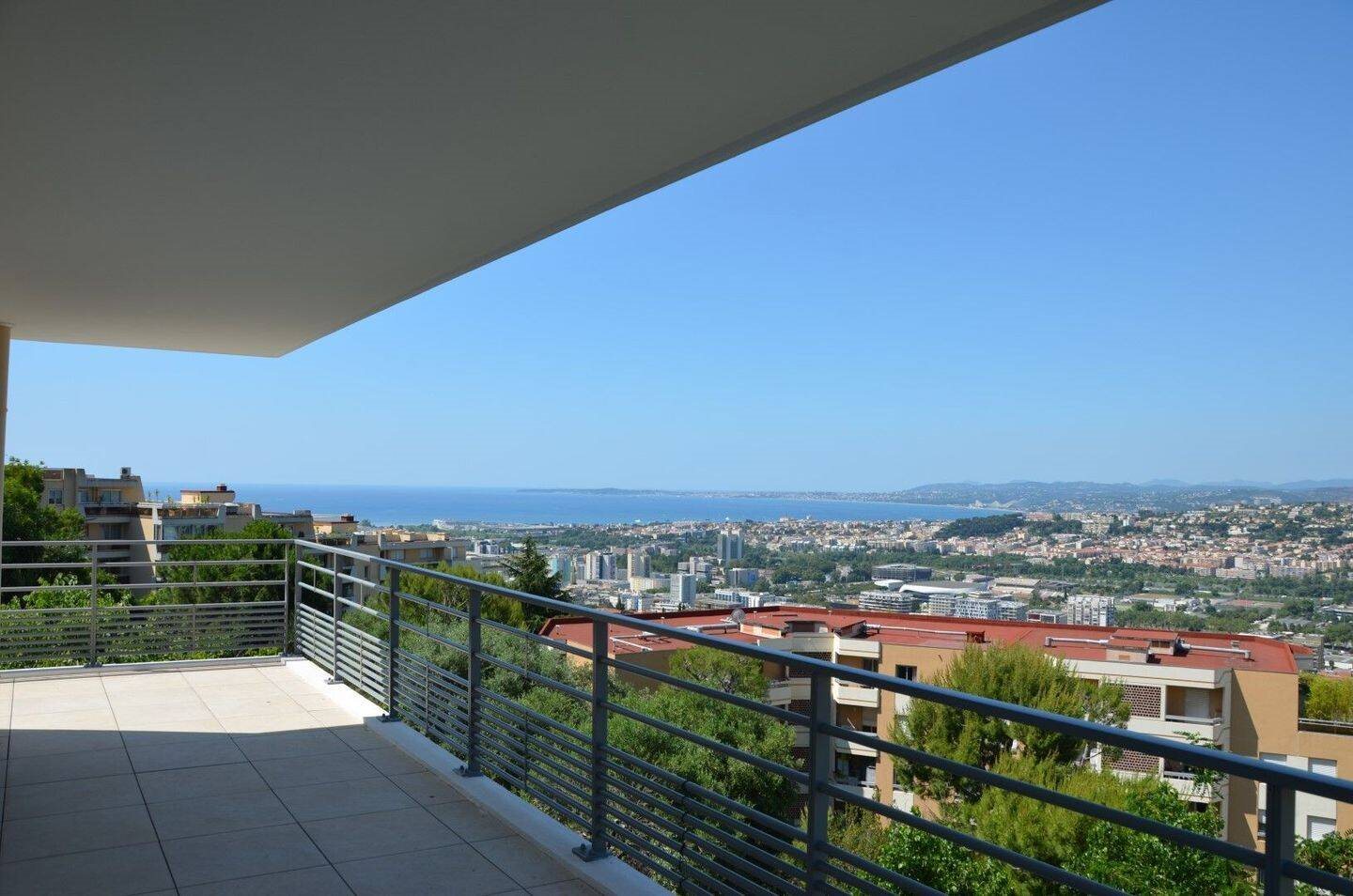 Nice Lanterne / Corniche Fleurie Immeuble Neuf Securise De 18 Appartements, Jamais Habite 3 pièces de 68 m² habitables au 2e étage avec terrasse très vaste de 57 m², loin de toute voie de circulation rapide, calme absolu. Exposition sud/ouest, ensoleillé, v...