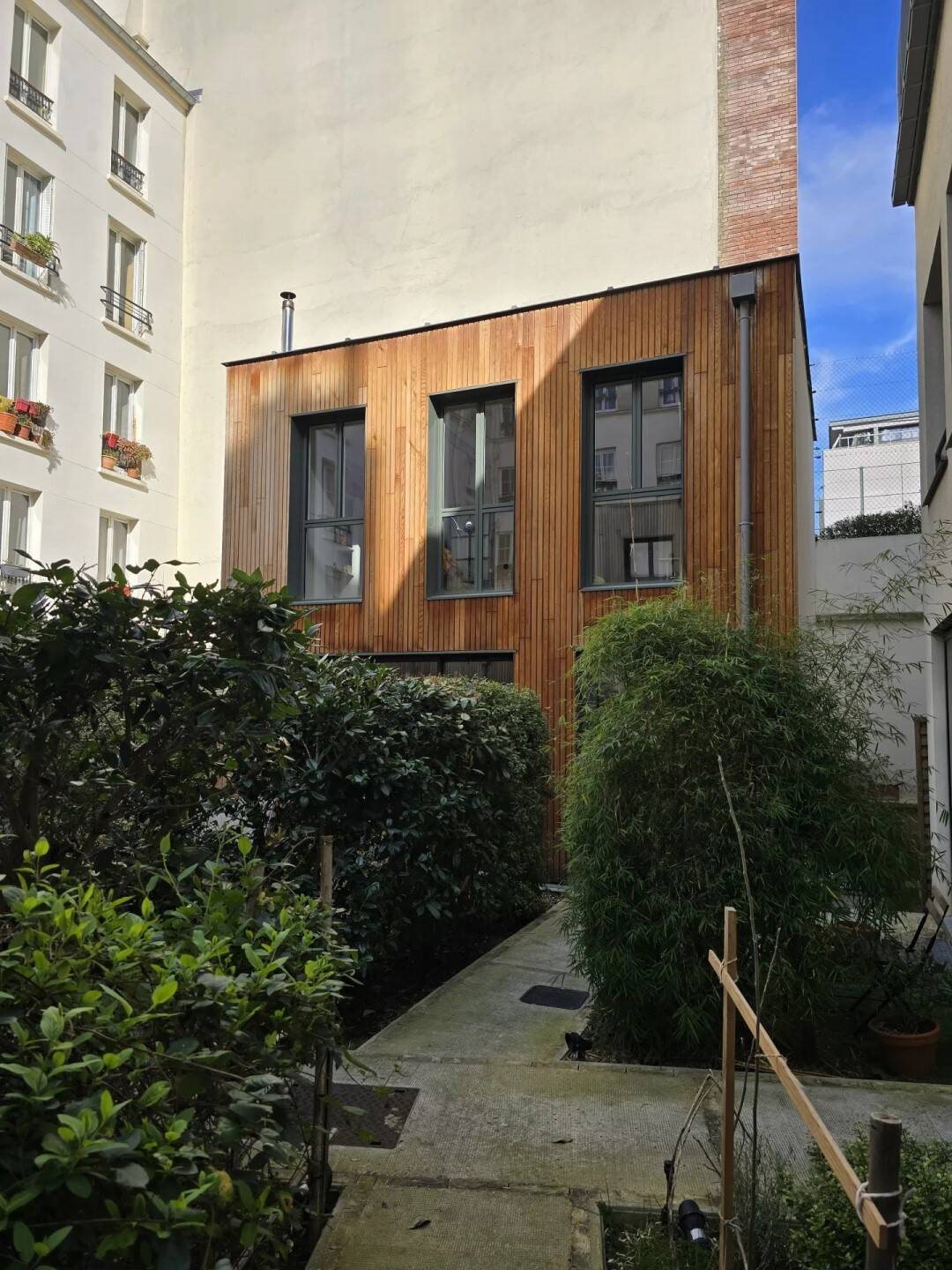 Dans une cours arborée, une maison individuelle avec jardin privatif composé de: Séjour avec cuisine ouverte, rangements, chambre parentale avec salle d'eau/W.C, dressing, une chambre avec salle d'eau/W.C, rangements et bureau. La construction neuve de ce b...
