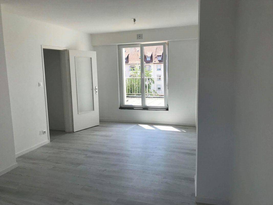 Appartement de 45 m2 à louer sur Strasbourg Appartement traversant de 52m2 au sol (45m2 Carrez) se situant au 4ème et dernier étage d'une petite copropriété. Il comprend une entrée avec placard et interphone, une chambre (lit + matelas + couette + 2 commodes), u...