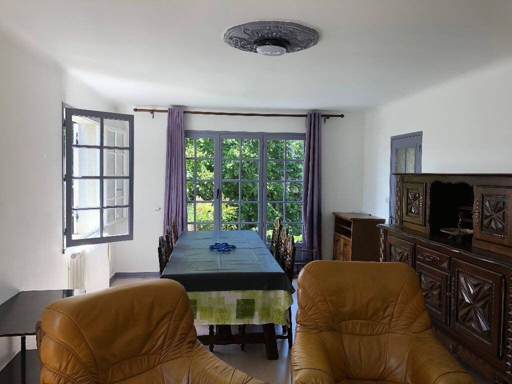 Maison meublée de type 5 avec 4 chambres, proposée à 390 € / mois charges comprises (hors internet). Bail solidaire uniquement. Disposition : Rez-de-chaussée : salon-séjour, cuisine aménagée séparée, salle de bain, Wc, 2 chambres Étage : mezzanine (coin Tv), sa...