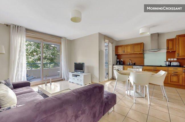 Lyon 7 - Jean Jaurès Université Loyer toutes charges et taxes comprises : eau, électricité, chauffage, Internet, Wifi, ménage mensuel ... Bel appartement 2 chambres de 69 m² Avec un garage box fermé et une terrasse Vue sur jardin Refait à neuf en 2023 Entrée : placard mural, placard à chaussures, porte manteau, commode, miroir Salon : canapé 6 places, table basse, tabouret, table et 4 chaises, buffet, Tv grand format, 2 fenêtres avec volets, vue sur jardin Cuisine américaine intégrée : lave-linge, lave-vaisselle, évier simple bacd, plaque électrique 4 feux, hotte électrique, réfrigérateur / congélateur, table, 4 chaises, four à micro-ondes, four, cafetière Expresso, bouilloire, grille pain Chambre 1 : lit double (140 200), 2 tables de chevet, placard mural, lampes, bureau et sa chaise, fenêtre avec rideaux voilages, stores, vue sur jardin, orienté sud Chambre 2 : lit double (140 200), 2 tables de chevet, placard double, bureau et sa chaise, fenêtre avec rideaux voilages, stores, vue sur rue Salle de bain : lavabo, vasque sur meuble, baignoire avec pare-douche, radiateur sèche-serviettes, meuble de rangement, Vmc, sèche-cheveux Toilettes indépendantes Terrasse de 16 m² : 2 transat, table, 3 chaises, étagères Au 1er étage avec ascenseur Garage box fermé au -2 accessible via télécommande Equipements : lave-linge, lave-vaisselle, Tv, chaînes françaises et étrangères, Ip, Tnt, dock avec cable jack, Internet, Wifi box fibre, radio, balai / serpillière, fer et table à repasser, aspirateur Chauffage individuel au gaz A 15 min à pied de l'Université Jean Moulin Lyon 3 A 15 min de la Part Dieu : métro B, Jean Macé Et de Place Bellecour : bus 35 Proche des arrêts Jean Macé, Jean Jaurès et Domer : bus 35, C7, C12 A 600 m du Parc Sergent Blandan Référence annonce : Mc-35559 Honoraires à la charge du locataire : 998 € Ttc Dépôt de garantie : 1500 €