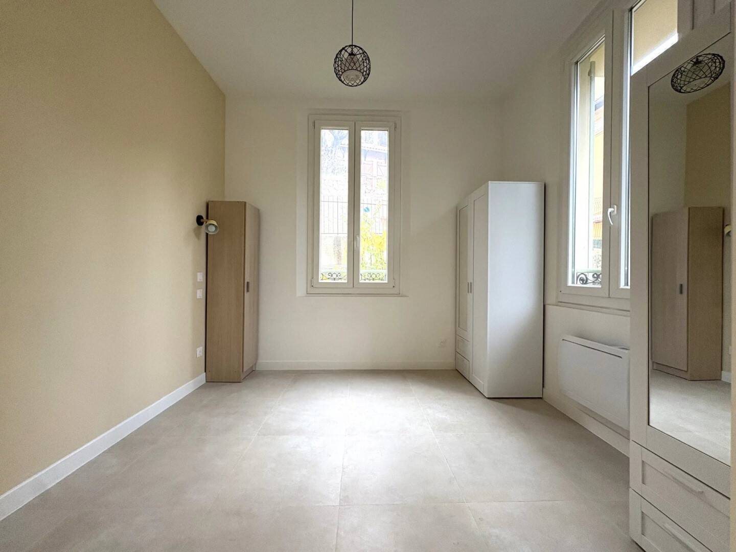 Superbe 2 pièces entièrement refait à neuf situé au 1er étage d'un petit immeuble niçois dans une résidence sécurisée sur Nice-Ouest. Cet appartement traversant est composé d'un séjour avec cuisine ouverte, une chambre avec rangements intégrés, une salle de douche avec Wc. Climatisation. Environnement calme et paisible. Proche des transports et des commodités. Avec stationnement.
