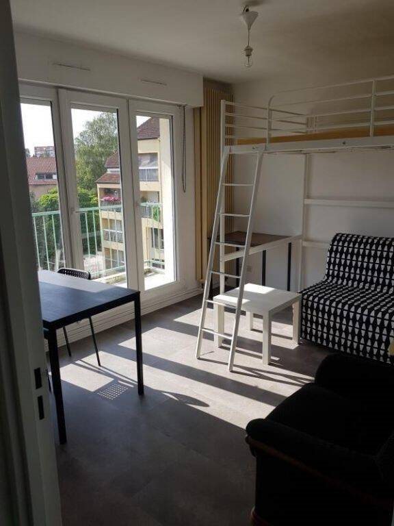 Metz Sablon - Rue Robert Parisot. Disponible de suite A louer. Dans petit immeuble au calme, au 4ème étage avec ascenseur, studio avec balcon, avec quelques meubles, coin kitchenette et salle de bains avec toilettes. A disposition : une cave. Chauffage individuel ...