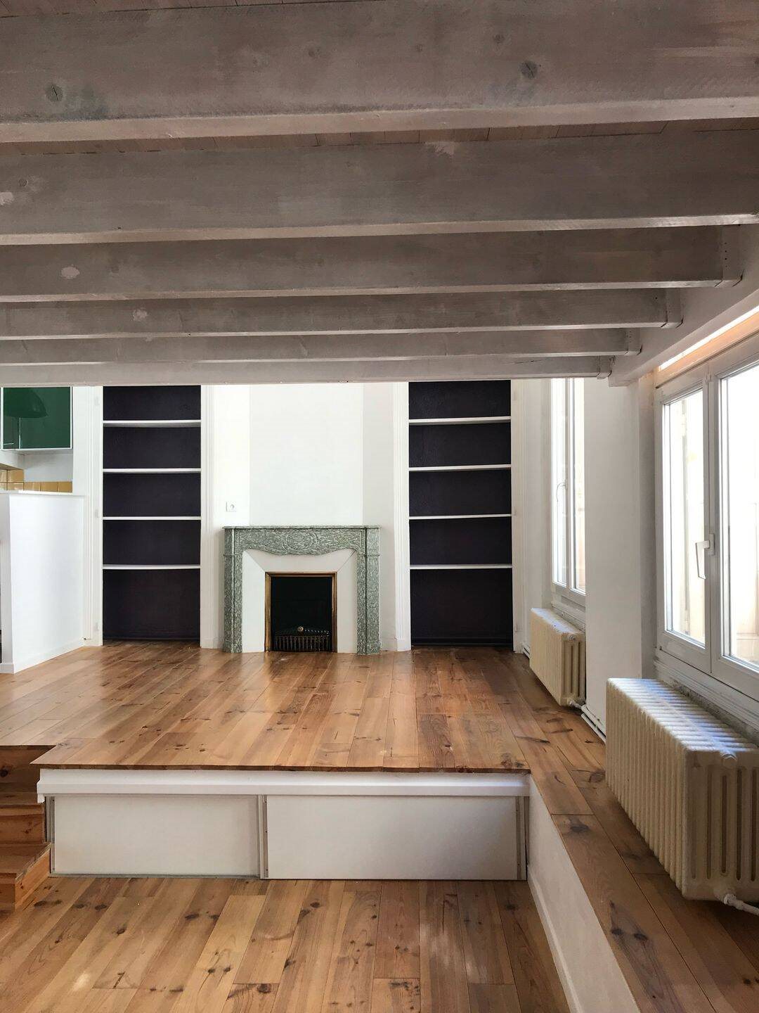 À quelques pas de la place Jean Jaurès, atypique appartenant 46m2 + 20 m2 en mezzanine. Grande hauteur, lumineux, traversant, beaucoup de charme. La cuisine , la chambre et la Sdb sont équipées et un grenier vient compléter les nombreux rangements. Chauffage indi...