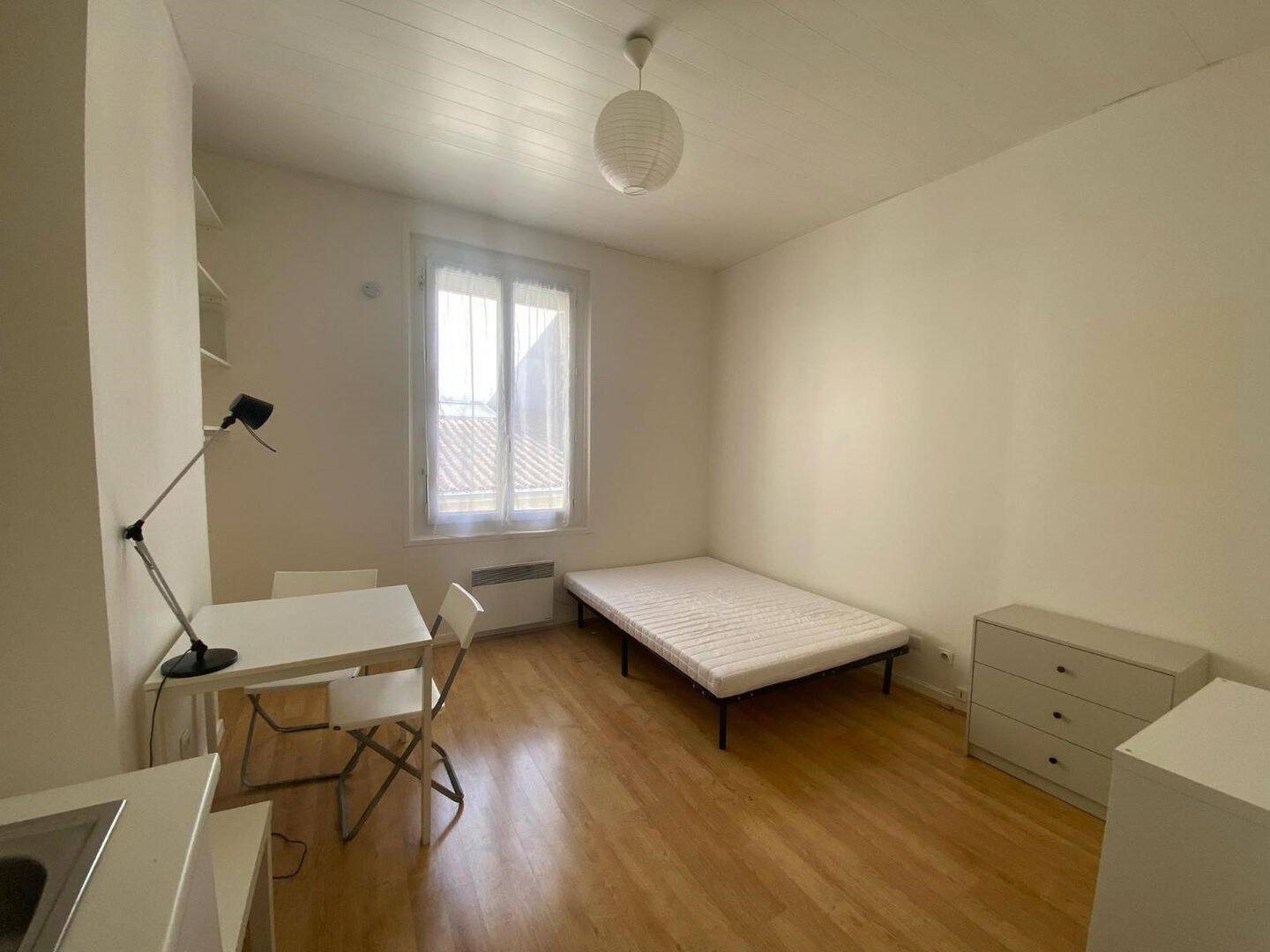 Bx Yser-Capucins - Bordeaux, Cours de l'Yser, à deux pas du Marché des Capucins, loue studio meublé de 23m² au 2e et dernier étage d'un petit immeuble pierre. Appartement donnant sur cour composé d'un séjour avec coin cuisine équipée (plaques, frigo top, hotte, micro...