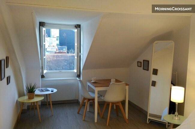 Mon petit studio est idéalement placé en plein coeur de ville pour vous permettre de découvrir Nantes à pied (Château, Cathédrale, théâtre Graslin..) et de profiter des nombreux restaurants, cafés et magasins. Il se situe dans une rue piétonne proche des Galeries Lafayette. Le studio est entièrement désinfecté entre 2 séjours. Il est rénové et équipé entièrement à neuf. Il se situe au 4 ème étage Sans ascenseur dans un bel immeuble. Il est parfait pour une personne ( 2 max) C'est un studio correspond bien à quelqu'un de jeune et pour qui les 4 étages sans ascenseur et la situation sous les toits ne pose pas de problème. Il se compose d'une pièce principale avec cuisine équipée ( réfrigérateur, plaques de cuisson, micro-onde, bouilloire, grille pain et vaisselle) avec coin repas, un vrai lit en 140 , une table et 2 chaises, une Tv écran plat et une commode et d'une salle de bain avec douche, lavabo, Wc et sèche cheveux.. Accès Wi Fi (fibre) Les draps et serviettes sont fournis.