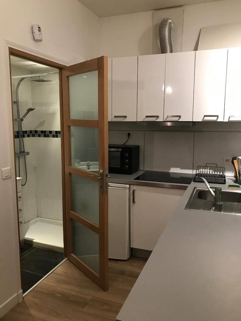 Idéal investissement locatif ou 1er achat. Rare. Disponible vide ou avec locataire logement type Maison atypique en fond de cour au sein d'une copropriété année 30 en briques, offrant une surface de 22 m2 optimisé avec séjour, cuisine équipée (plaque induction, ho...