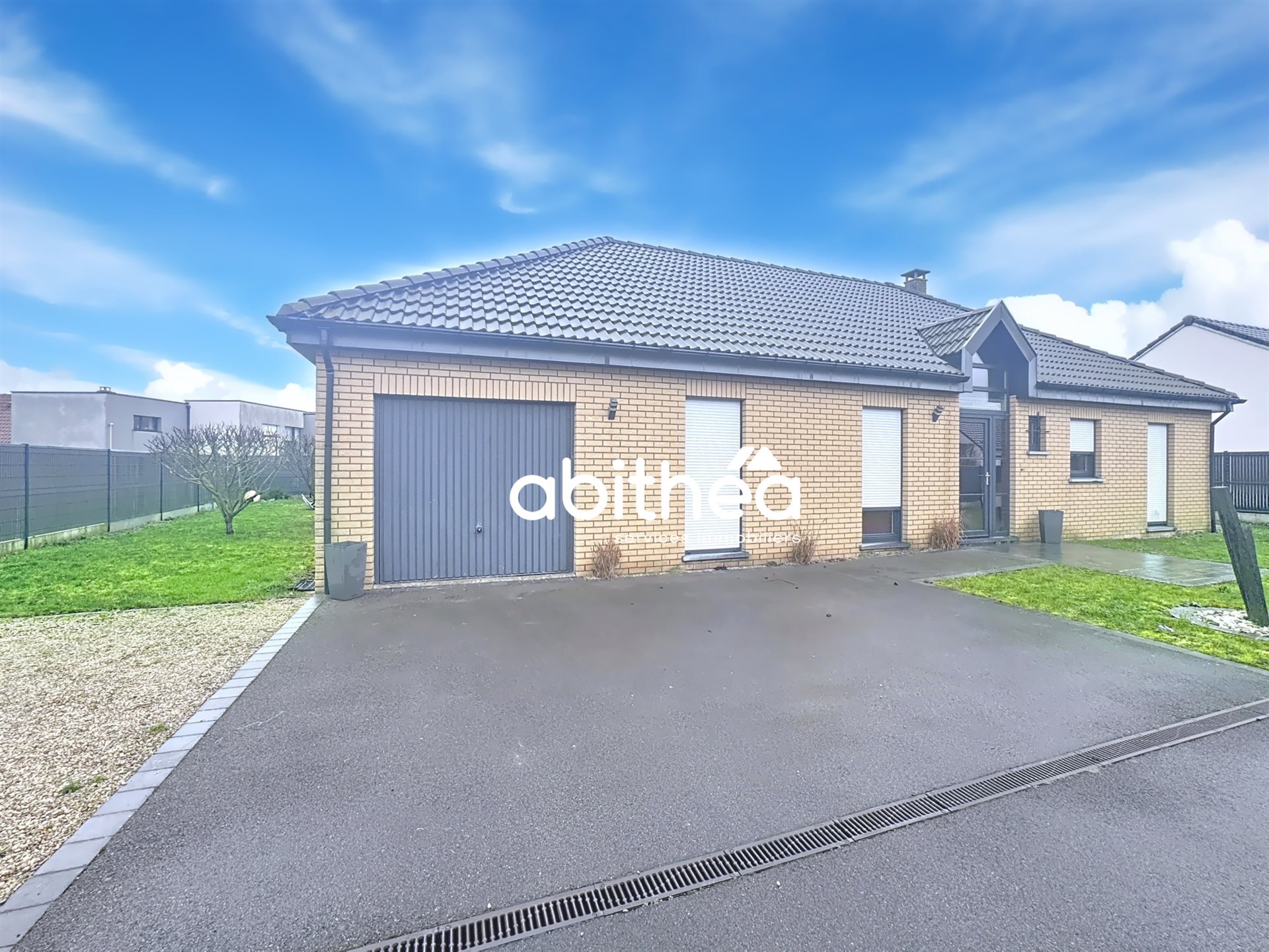 Référence: Vv-009H Mandat: 1661 Nouveaute Abithea, Plain Pied Individuel, 3 Chambres, Top Secteur, Garage, JARDIN. Situé dans un secteur recherché de la charmante commune d’Hulluch, à quelques pas des commerces essentiels et à seulement 5 minutes des écoles, ce plain-pied individuel en briques construit en 2012 développe environ 112 m² habitables, parfaitement entretenus. La maison offre un cadre de vie moderne et confortable, dans un environnement calme, idéal pour une vie de famille, tout en bénéficiant d’une situation pratique à 10 minutes de Lens, 20 minutes de Béthune et 25 minutes d’Arras. Implantée sur une parcelle de plus de 600 m² entièrement close, elle séduit dès le portail franchi. Vous découvrirez un hall d’entrée lumineux, distribuant l’ensemble des pièces de la maison avec une circulation fluide et fonctionnelle. Une superbe verrière rétractable, apportant un esprit loft très tendance, ouvre sur une vaste pièce de vie de 58 m², baignée de lumière. Salon, salle à manger et cuisine américaine équipée avec îlot central composent un espace convivial, parfaitement pensé pour recevoir et partager des moments en famille.Un poêle à granulés Homza (2019) vient renforcer l’ambiance chaleureuse et constitue un mode de chauffage économique particulièrement apprécié. La partie nuit propose trois chambres allant de 9,67 m² à 11,68 m², toutes équipées de placards intégrés. La salle de bain offre un confort rare avec une baignoire, une douche à l’italienne ainsi qu’un meuble double vasque. Un Wc indépendant est également présent à proximité de l’entrée. À l’extérieur, le jardin faisant le tour de la maison constitue un véritable atout. Soigné et agréable, il s’accompagne d’une grande terrasse carrelée d’environ 40 m², idéale pour profiter des beaux jours, ainsi que d’un abri moderne en tôle. Un garage de 23 m², accessible depuis l’intérieur comme depuis l’extérieur, complète les prestations. Il dispose des branchements pour machines et permet également le stationnement de deux véhicules en enfilade. Plusieurs possibilités de stationnement sont également présentes sur la parcelle. Concernant les caractéristiques techniques, la maison dispose d’un chauffage électrique, complété par le poêle à granulés aujourd’hui utilisé comme chauffage principal. Elle bénéficie également d’un récupérateur d’eau enterré d’environ 2 000 litres, d’un ballon thermodynamique, ainsi que d’un raccordement au tout-à-l’égout. Les menuiseries sont en Pvc double vitrage avec volets roulants à chaque fenêtre.Le Dpe est classé C. Parfaitement entretenue, décorée dans des tons neutres et sans travaux à prévoir, cette maison séduira les acquéreurs en recherche d’un plain-pied récent, lumineux et clé en main, dans un secteur particulièrement apprécié. Le prix de cette maison est de 309 750€ frais d'agence inclus dont 14 750€ Ttc d'honoraires à la charge de l'acquéreur. Envie de visiter le plain pied de vos rêves? Contactez Rapidement Votre Conseiller ABITHEA: Vincent Vignacourt ou par mail à: agent commercial Rsac Les informations sur les risques auquel ce bien est exposé se trouvent sur le site géorisques: -
