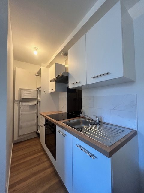 A louer Brest Lambezellec, très beau T1 bis situé sur Lambezellec en direction de Bohars, un appartement meublé au Rdc sur cour, comprenant une pièce de vie avec cuisine entièrement aménagée et équipée (four, plaque de cuisson vitrocéramique, hotte, frigo, congélateur, micro-ondes), une chambre avec dressing, salle d'eau avec WC. L'appartement vient d'être rénové. Place de parking dans l'immeuble. Libre. Honoraires de location: 231.00 € Ttc, dont honoraires état des lieux: 63.00 € TTC. Dépôt de garantie: 550.00 € Dpe: D Ges: B